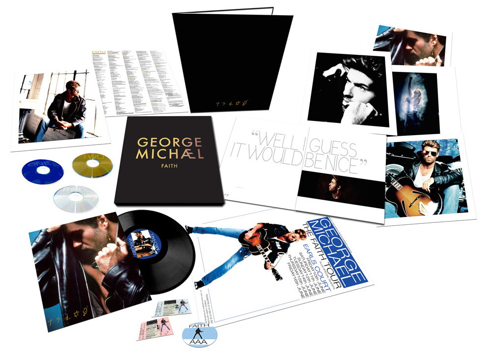3. Deluxe kiadás: remasterelt album/ bónusz cd 12" remasterelt verzióval, B-oldal /DVD - 1987-es 60 perces UK Channel 4 interjúkülönlegesség Jonathan Ross-szal + 25 Music Money Love Faith EPK + 7 remasterelt promó video / Vinyl LP - eredeti remasterelt album 180gr súlyú vinyl, eredeti albumborítóban / Egy 60 oldalas könyv exklúzív George Michael interjúval, borító jegyzetekkel és fotókkal / 5 fajta képeslap - poszter, koncertjegy másolatok és a Faith turné útvonala